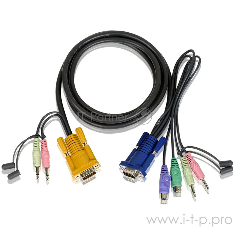 ATEN KVM Cable 2L-5302P Кабель для KVM: 2*PS/2(m)+DB15(m)+2*Audio (PC) -на- SPHD15(m)+2*Audio (KVM),