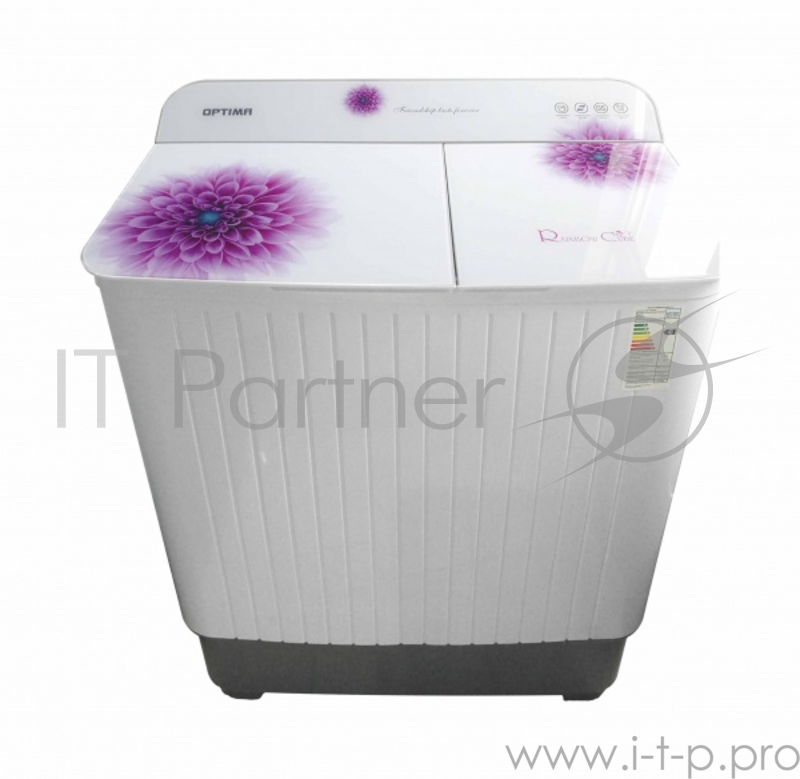 Стиральная машина OPTIMA МСП-72СТ (полуавтомат, стирка/отжим: 7,2кг/6,0кг, 1350об./мин., насос) (Белое стекло, фиолетовые цветы)