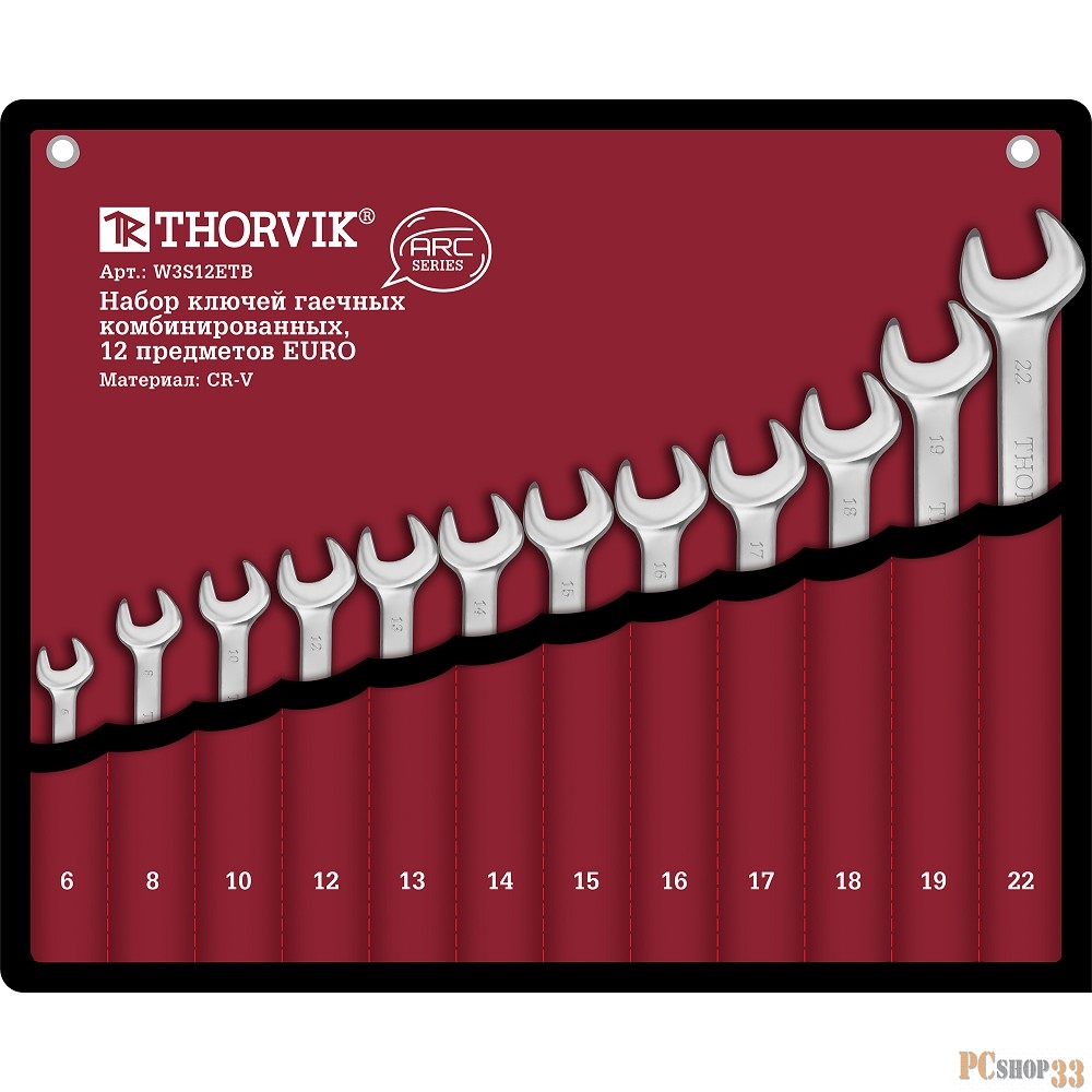 Thorvik W3S12ETB Набор ключей гаечных комбинированных серии ARC в сумке, 6-22 мм, 12 предметов EURO