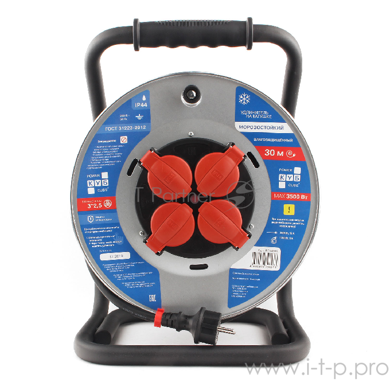 Удл. на мет. катушке “Power Cube” IP44 16А 30м резина 3*2,5мм2 4 роз. с/з