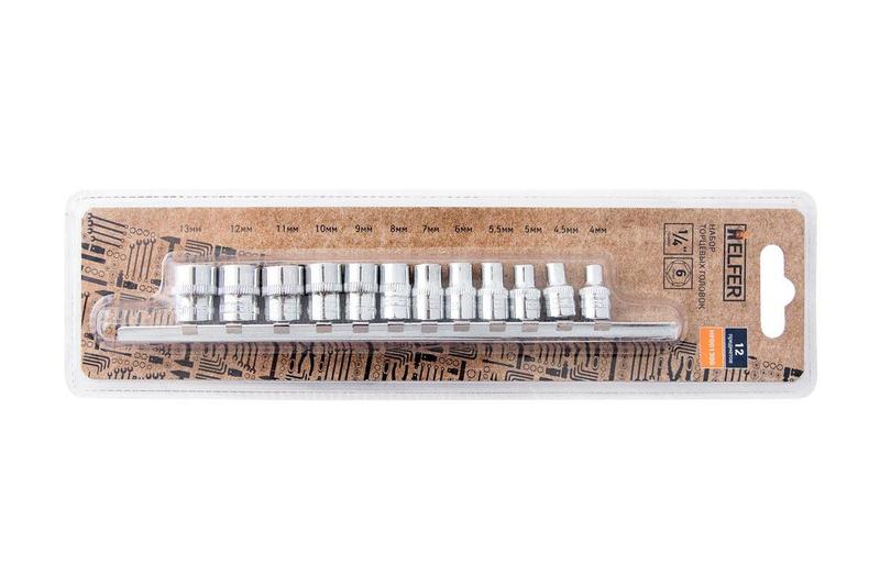 Набор торцевых головок HELFER 1/4 12шт 4-13mm [HF001300]