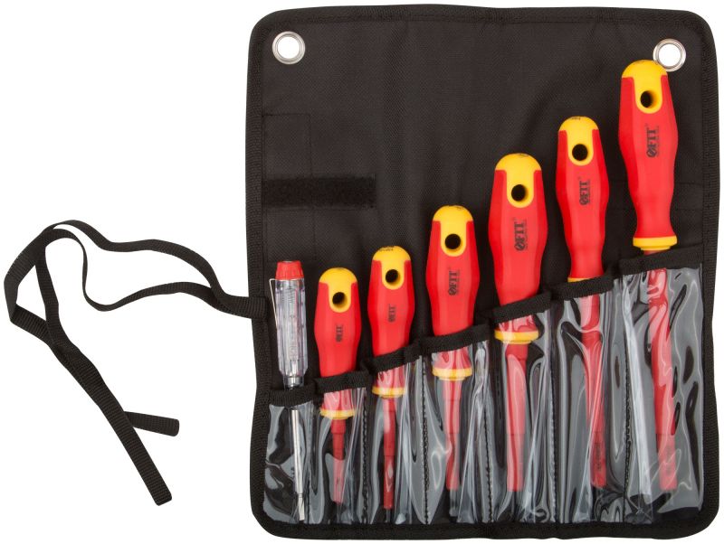 Отвертки изолированные FIT IT 1000 В, CrV сталь, прорезин. ручки, в нейлоновом конверте, 6 шт.+ 1 индикаторная [56130]