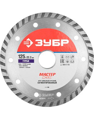 Круг отрезной алмазный ЗУБР МАСТЕР ТУРБО сегментированный, сухая резка, 22,2х125мм [36613-125]