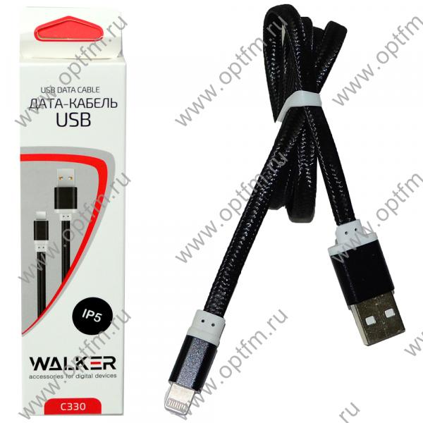 Кабель USB - Apple 8pin/lightning WALKER C330 (iOS11) в матерчатой обмотке, плоский черный
