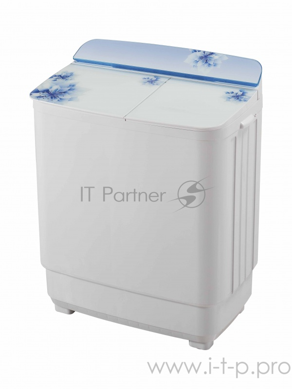 Стиральная машина OPTIMA МСП-78СТ (п/авт., стекл. крыш., стир./отж. 7,8кг/5кг,1350об./мин., насос) (Белое стекло, синие цветы)