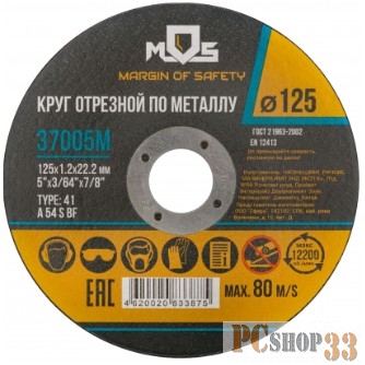 MOS (37005М) Круг отрезной по металлу MOS, посадочный диаметр 22,2 мм, 125х1,2 мм