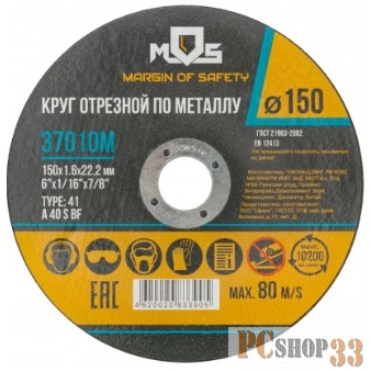 MOS (37010М) Круг отрезной по металлу MOS, посадочный диаметр 22,2 мм, 150х1,6 мм