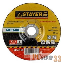Круг шлифовальный абразивный STAYER MASTER по металлу, для УШМ,180х6х22,2мм [36228-180-6.0_z01]