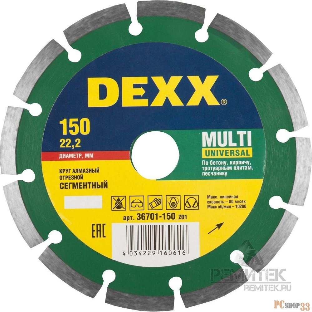 Круг отрезной алмазный DEXX универсальный, сегментный, для УШМ, 150х7х22,2мм [36701-150_z01]