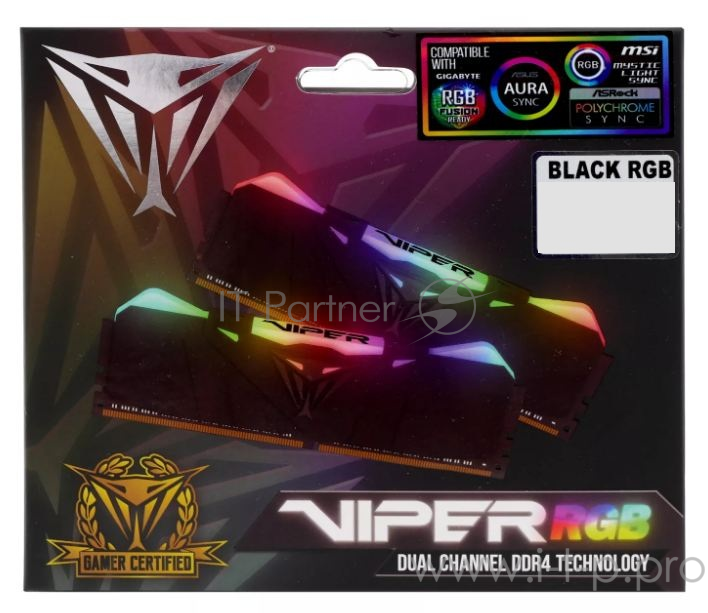 DDR 4 DIMM 32Gb (16GBx2) PC28800, 3600Mhz, PATRIOT Viper RGB (PVR432G360C7K) (retail)