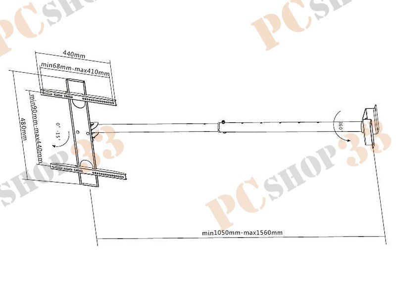 Кронштейн потолочный Brateck PLB-CE344, до 50 кг, черный