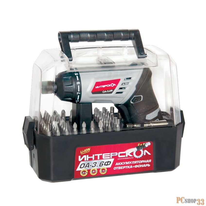 Отвертка аккумуляторная ИНТЕРСКОЛ ОА-3,6Ф (Li-ion, кейс) 23 ФЕВРАЛЯ [433.3.1.23]
