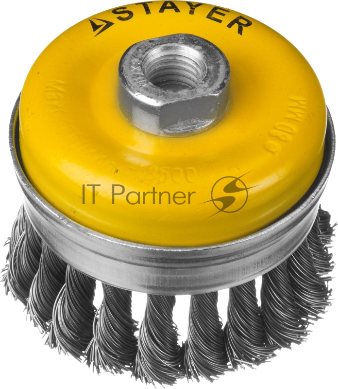 Щетка чашечная усиленная для УШМ STAYER PROFESSIONAL, жгутированная стальная проволока 0,5мм, 80ммхМ14 [35137-080]