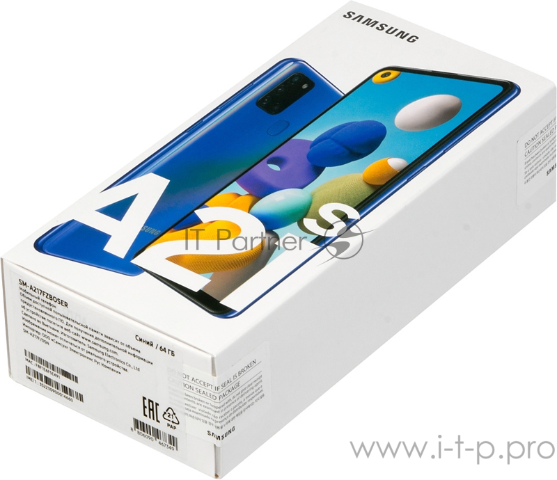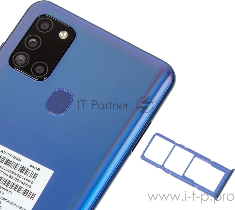 Смартфон Samsung SM-A217F Galaxy A21s 64Gb 4Gb синий моноблок 3G 4G 2Sim 6.5 720x1600 Android 10 48Mpix 802.11 a/b/g/n/ac NFC GPS GSM900/1800 GSM1900 TouchSc MP3 microSD max512Gb