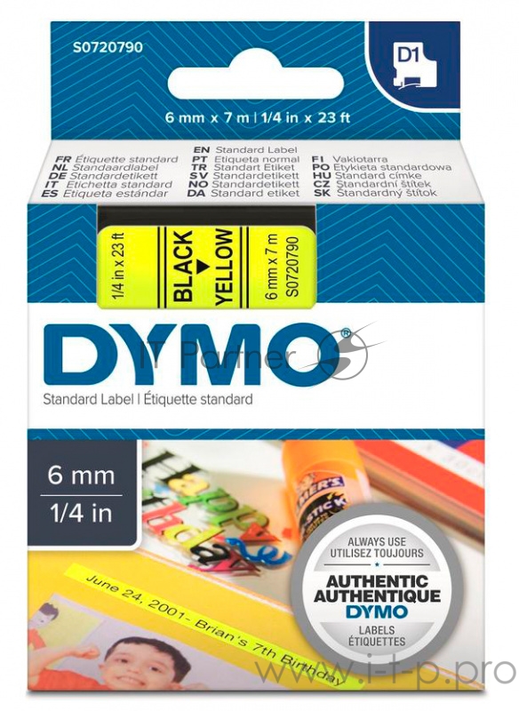 Расходные материалы Картридж с лентой 6мм х 7м , пластик черный шрифт на белом фоне S0720790