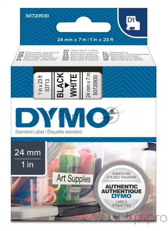 Расходные материалы Картридж с лентой 24 мм х 7 м., пластик, черный на белой ленте S0720930