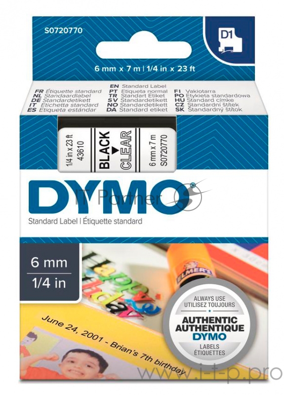 Картридж ленточный Dymo D1 S0720770 черный/прозрачный для Dymo