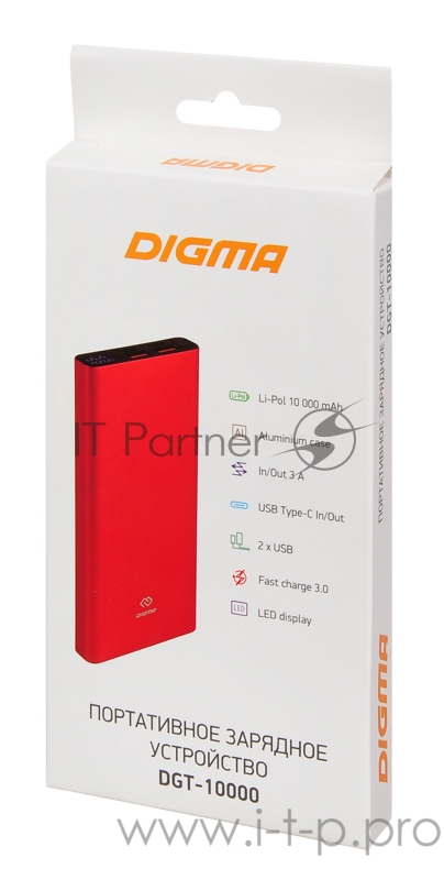 Купить Power bank Digma DGT-10000-RD в Коврове. Заказать на сайте. Забрать в "Ваш Компьютер" г.Ковров пр-т Ленина 20