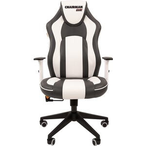 Игровое кресло Chairman game 23 серый/белый (экокожа, регулируемый угол наклона, механизм качания)