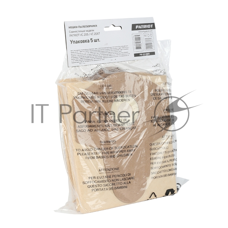 Пылесборник бумажный для пылесосов: VC 205, VC 206T. 20 л. 5шт