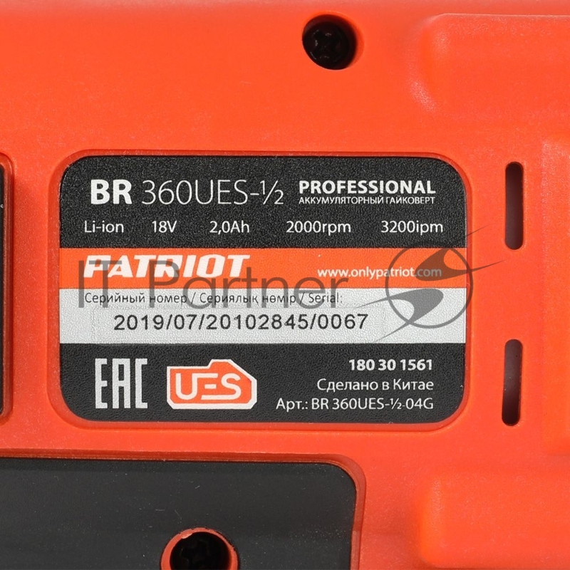 Гайковерт ударный PATRIOT BR 360UES 1/2. 0-2000 об/мин 3200 уд/мин