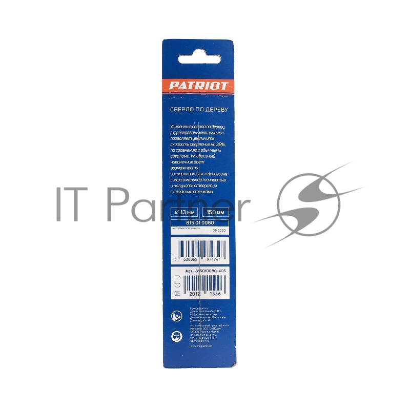 Сверло EDGE by PATRIOT по дереву спиральное 13 мм, W-образная заточка, 1 шт в блистере