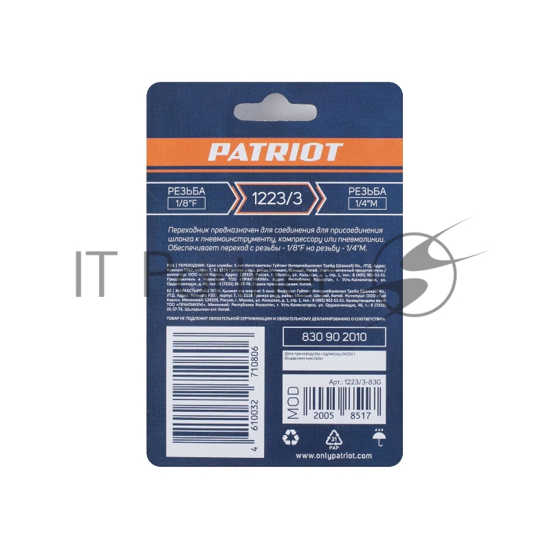 Переходник PATRIOT 1223/3 (1/4M - 1/8F)