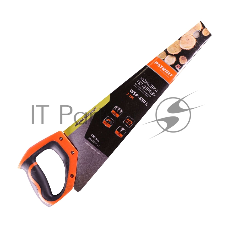 Ножовка PATRIOT WSP-450L, по дереву, 7 TPI крупный зуб, 3-х сторонняя заточка, 450мм
