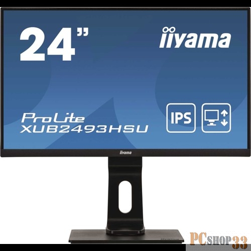 Монитор Iiyama XUB2493HSU-B1 23.8 [16:9] 1920х1080(FHD) IPS, nonGLARE, 250cd/m2, H178°/V178°, 1000:1, 5M:1, 16.7M, 4ms, VGA, HDMI, DP, USB-Hub, Height adj, Pivot, Tilt, Swivel, Speakers, Audio out, 3Y, Black