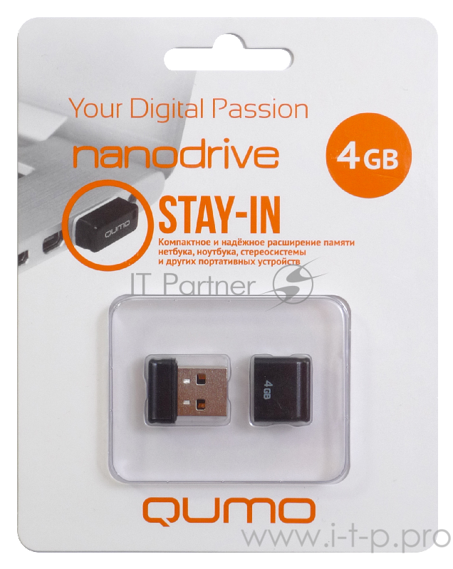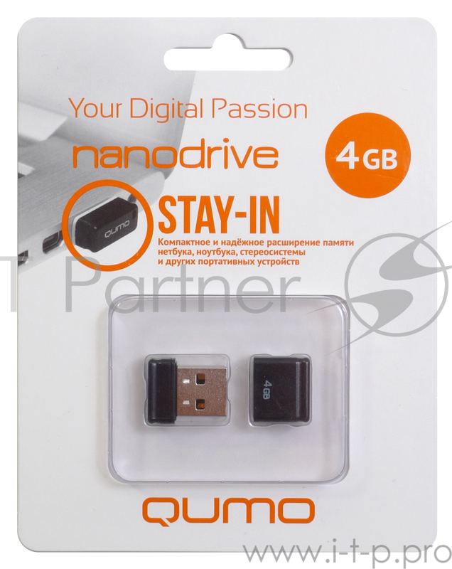 Носитель информации USB 2.0 QUMO 4GB NANO QM4GUD-NANO-B Black