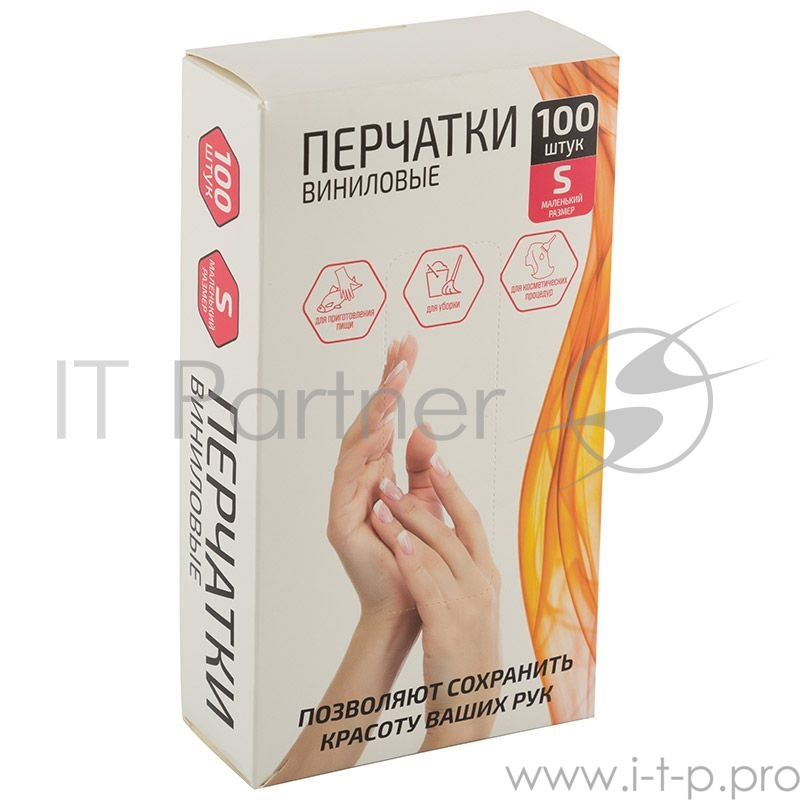 Перчатки хозяйственные виниловые Рыжий кот, неопудренные, размер S, 100 шт. в боксе