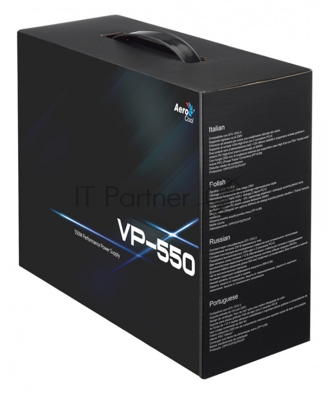 Блок питания Aerocool ATX 550W VP-550 (24+4+4pin) APFC 120mm fan 4xSATA