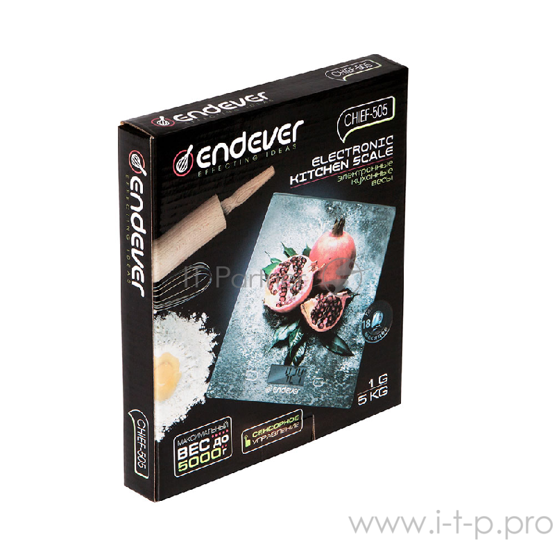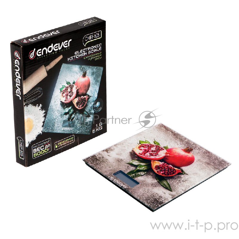 Весы кухонные электронные Endever Chief-505, рисунок Гранат, вес от 2 г до 5 кг, закаленное стекло, автовыключение