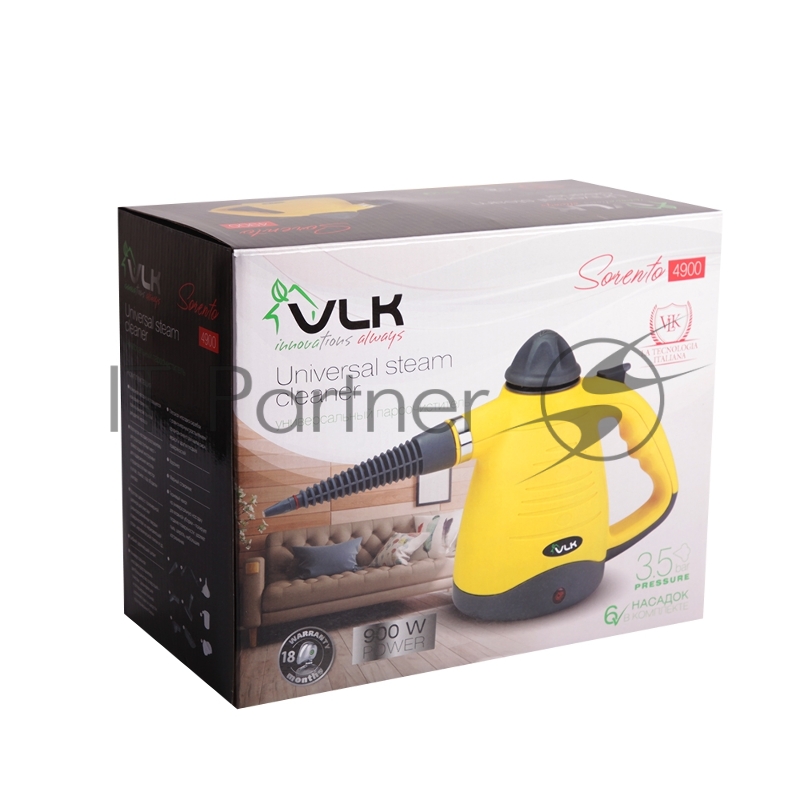 Универсальный пароочиститель VLK Sorento 4900, черный/желтый, 900 Вт, 3.5 бар, 28 г/мин