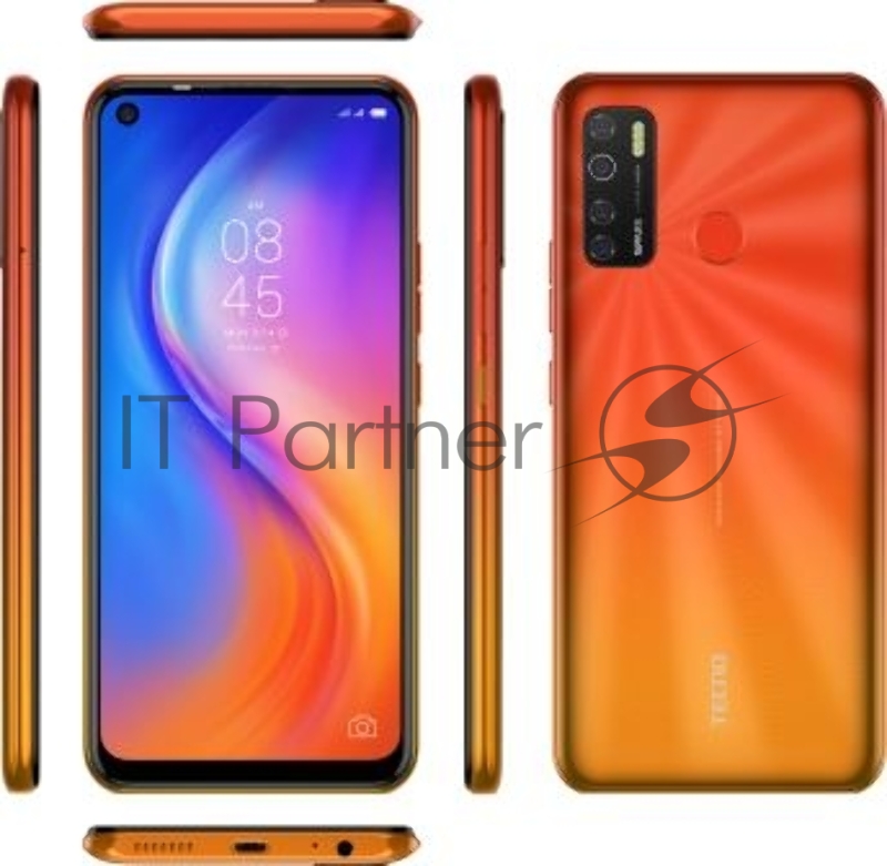 Смартфон Tecno KD7h SPARK 5 Spark Orange, 6.6, 1560 x 720 пикселей, 2.0GHz, 4 Core, 2GB RAM, 32GB, up to 256GB flash, 13Mpix+2Mpix+2Mpix+QVGA/8Mpix, 2 Sim, 4G, BT v5.0, WiFi 802.11 b/g/n, GPS / AGPS, Micro-USB, 5000mAh, Android 10 (GO), 175g, 174,6 м
