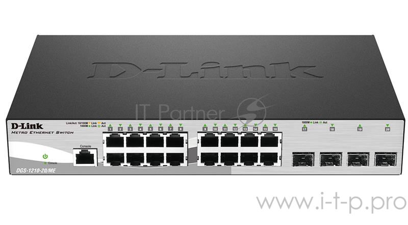 Сетевое оборудование D-Link DGS-1210-20/ME/A1A Управляемый коммутатор 2 уровня с 16 портами 10/100/1000Base-T и 4 портами 1000Base-X SFP