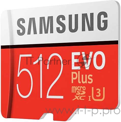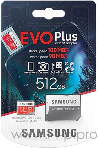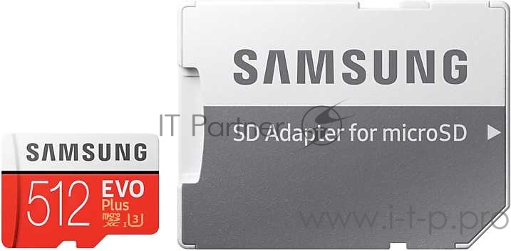 Карта памяти microSDXC 512GB Samsung EVO Plus Memory Card Samsung MB-MC512HA/RU UHS-I U1 Class 10, Adapter, 100/90 MB/s, 10000 циклов, - 25°C to 85°C, RTL