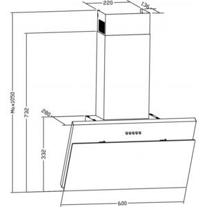Вытяжки Weissgauff наклонная, 600 х 333 х 432 мм, 600 м3/ч, 58 дБ, белый цвет