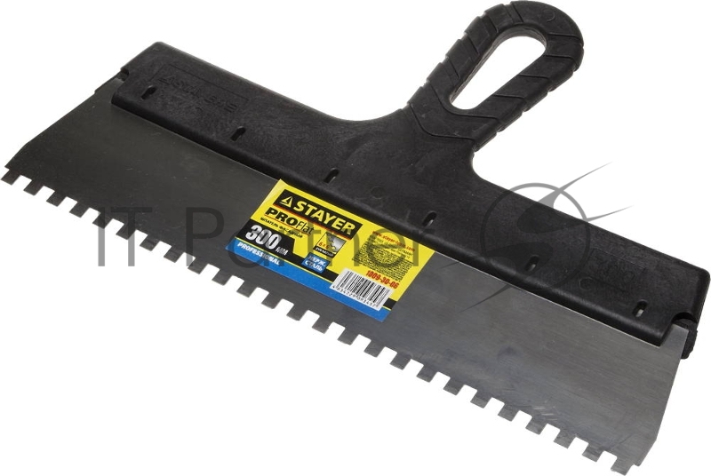 Шпатель STAYER PROFESSIONAL нержавеющий зубчатый с пластмассовой ручкой, 300мм, зуб 6х6мм1009-30-06