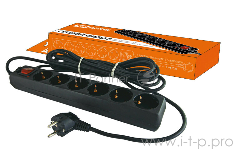 Сетевой фильтр ТДМ SQ1304-0013 СФ-06В выключатель 6гнезд 5м с заземлением ПВС 3х1мм2 16А/250В