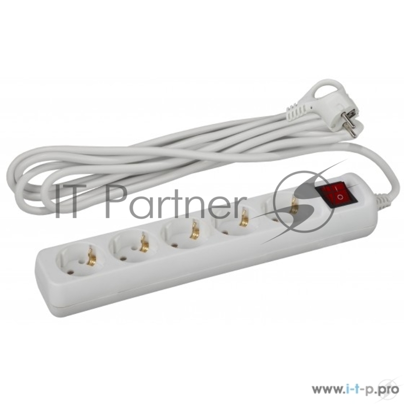 Удлинитель ЭРА Б0028382 U-5es-3m-3x1 с заземлением с выключателем 5 гнезд 3 м {полипропилен, 3х1 мм2}