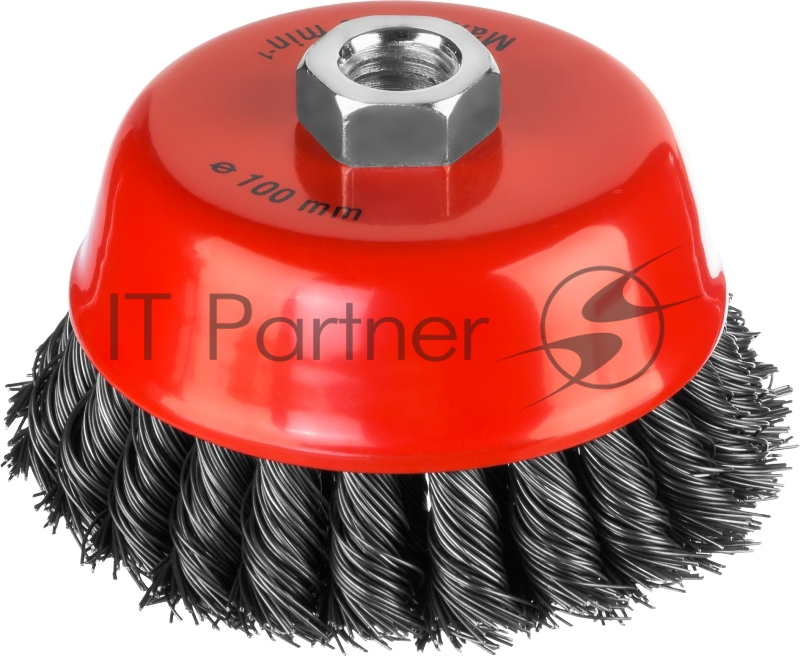 Щетка-крацовка чашечная для УШМ, двухрядная, жгутированная стальная проволока 0,5 мм, d=100 мм, MIRAX 35104-100-2