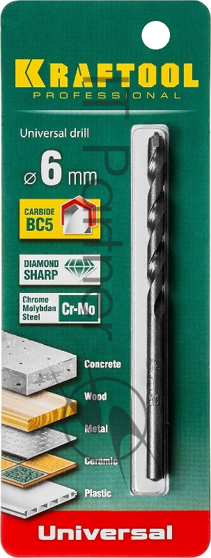 Сверло UNIVERSAL по бетону, металлу, дереву, KRAFTOOL PROFESSIONAL 29172-100-6, 6 х 100 мм