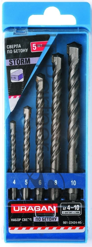Набор URAGAN Свёрла STORM по бетону, ударные, шестигранный хвостовик,4 5 6 8 10 мм, 5шт