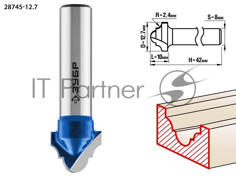 Фреза пазовая фасонная №6 ЗУБР 12.7x10мм, радиус 2,4мм