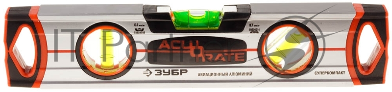 Уровень ЗУБР ТОРПЕДО ACURATE 4 фрезерованный, особопрочный профиль из авиационного алюминия, 3 ампулы, 25см