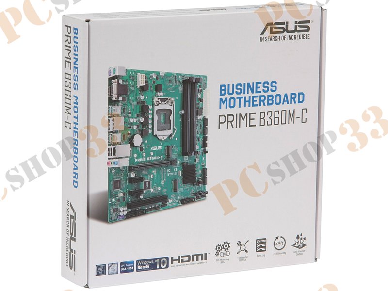 Мат. плата Socket1151 ASUS PRIME B360M-C (iB360, 4xDDR4, M.2, SATA III, PCI-E, D-Sub, HDMI, 2xDP, 1Гбит LAN, USB3.1, mATX)