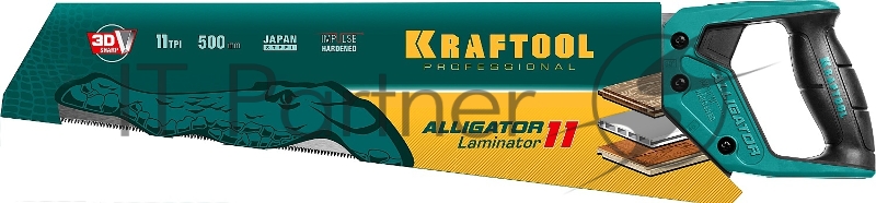 Ножовка по ламинату KRAFTOOL Alligator LAMINATOR, 500 мм, 11 TPI 3D зуб