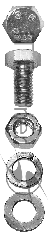 Болт (DIN933) в комплекте с гайкой (DIN934), шайбой (DIN125), шайбой пруж. (DIN127), M10x25мм, 3шт, ЗУБР