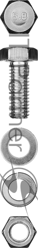 Болт (DIN933) в комплекте с гайкой (DIN934), шайбой (DIN125), шайбой пруж. (DIN127), M6 x 16 мм, 12 шт, ЗУБР
